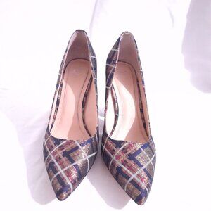 Share Women MARC FISHER LTD US SZ 6 Gold Plaid Shimmer Metallic Heel| Elia