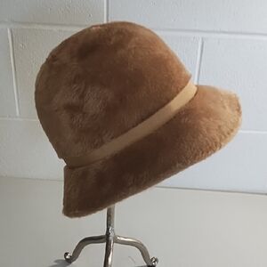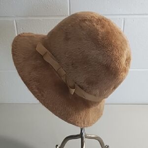 Shari Creations Soft Tan Fur Bucket Hat Grosgrain Hat Band