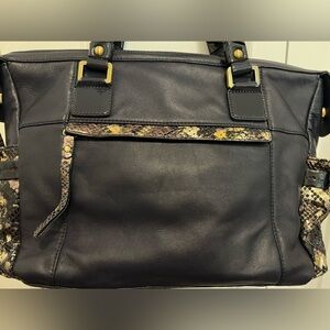 Sharif 1827 leather handbag. Navy blue. Gold faux snake skin.