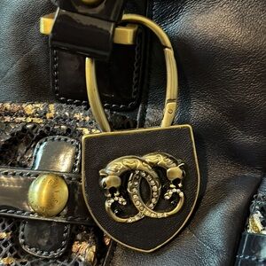 Sharif 1827 navy blue with gold snake skin leather handbag