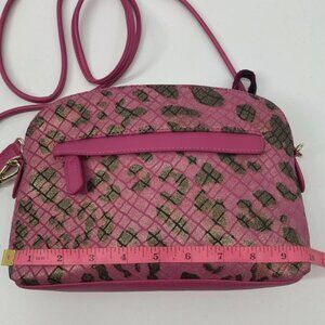 Sharif Brand Leopard Animal Print Crossbody Leather Embossed Bag Gold Overtones