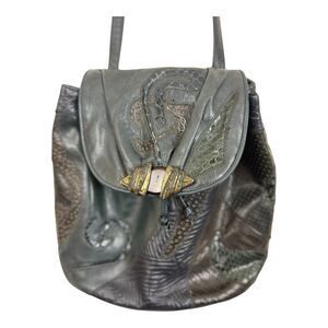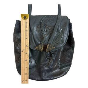 Sharif Exotic Leather Crossbody Handbag Reptile Bag Made in USA Navy Blue