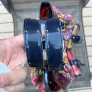 Sharif Floral Floral Shoulder Bag with Black Patent Trim - EUC