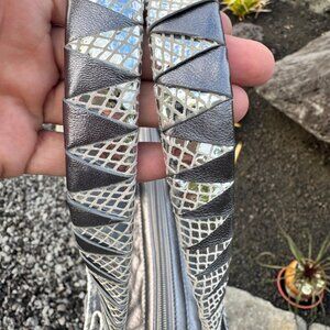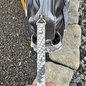 Sharif Metallic Silver & Snakeskin Tote w/ Matching Wristlet NWOT with Flaws