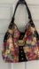This is a Sharif hobo bag with a floral sequin design and black patent leather trim.