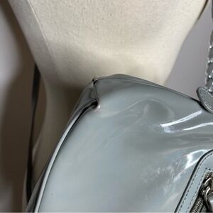 Sharif Patent Leather Gray Blue Embroidered Flower Crossbody Purse