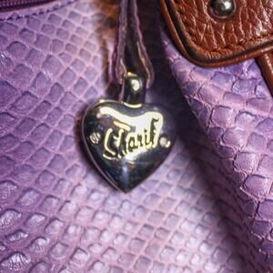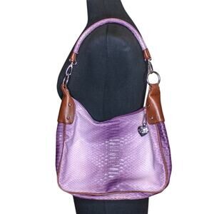 Sharid Studio snake print embossed leather shoulder bag purse in lilac purple and brown
