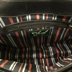 The striped interior lining and “Sharif Studio” label confirm this bag is an authentic circa 2000–2004 design, when the brand’s unique styling was at its peak in major department stores.