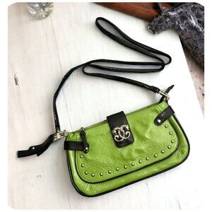 Sharif Studio Handbag Crossbody Clutch Conversion Wristlet Lime Green Colorblock