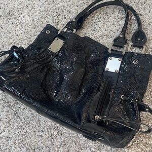 Sharif Vintage Leather Embossed Black Tote Shoulder Bag Double Handle Pockets