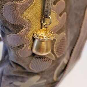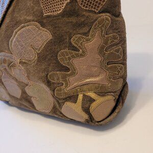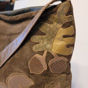 Sharif Vintage Suede Patchwork Fall Theme Leaves Acorn Crossbody Bag