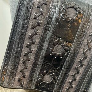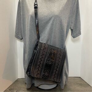 VINTAGE: Multi brownish pewter metallic leather shoulder bag.