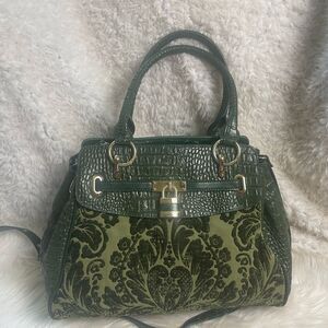 Sharif synthetic croc prints and tapestry olive green satchel/shoulder bag .gold tone hardwares. Top Zipper the inside lining has a side zipper three side pockets. Pre owned in good used condition some peelings around the top zipper area and on the detachable shoulder trap. See all pictures any questions please message.M1