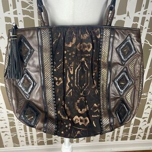 Sharif Vtg 80s Leather Mixed Media Patchwork Shoulder Bag Brown, Black, Copper