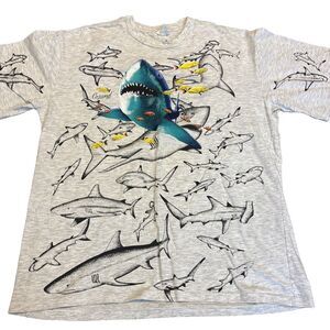 Shark AOP All Over Print Single Stitch T-shirt Large - Double Sided - Grey