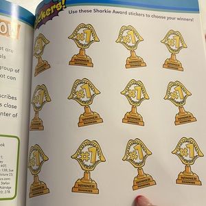 The Sharkies has stickers and is in like new condition. Has slight bends in spine but stickers are inside.