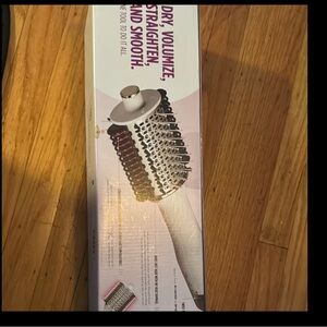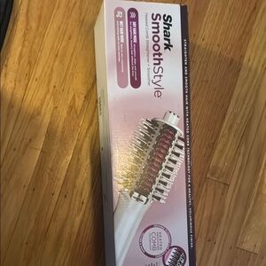 Shark SmoothStyle hair tool for straightening and volumizing. Features a sleek white and pink design.