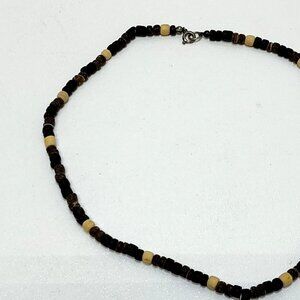 Shark Tooth Surfer Necklace Coconut Beads Natural Shell Black Stone Handmade VTG