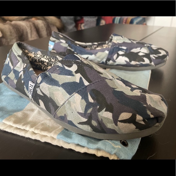 TOMS signature look takes a limited-edition turn in collaboration with Discovery's "Shark Week." The silhouettes of sharks from around the world create a fierce camo pattern on a sleek slip-on.