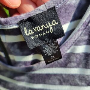 Gray with white stripes short sleeve Tunic. Bottom hem is in the shape of a sharkbite. Has a zipper closure in the back starting at the neck. New without tags.