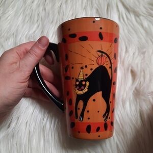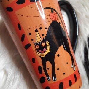 Sharon Bloom Hand Painted Black Cat and Pumpkin Halloween Coffee Mugs
