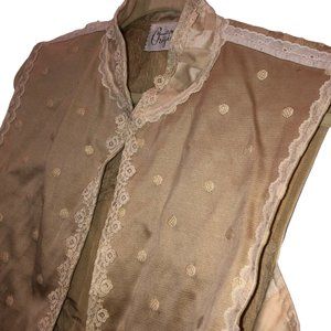 Sharon La Monaco Original Vintage khaki cream embroidered lace trim vest…
