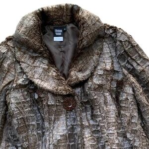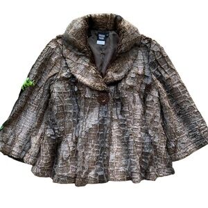 Sharon Young Cropped Shiny Faux Fur Buttoned Swing Jacket Dark Brown Size Small