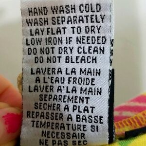 tropical print in bright neon colors featuring palm trees hibiscus crosses geometric shape