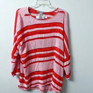 Sharon Young Womens Red Striped Top Large Long Sleeve Relaxed Crinkle