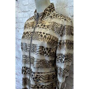 Sharon Young Womens S Full Zip Jacket Brown Leopard Animal Print Faux Suede NEW