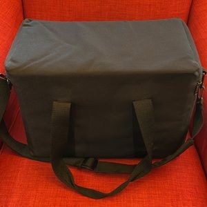 Excellent Condition. Non-smoking home. Padded on all sides. Removable Velcro divider inside. Zipper compartment inside and on the outside. Two sets of straps for carrying. Removable shoulder strap.
