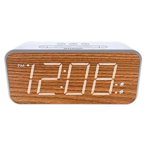 Sharp LED Alarm Clock Wood Grain Face Model SPC736 LED White