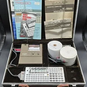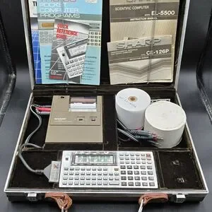 Sharp EL-5500 Scientific Pocket Computer And Sharp CE-126P Printer Interface With Carry Case Rare Works Please Note LCD Screen Is Not Perfect
