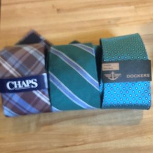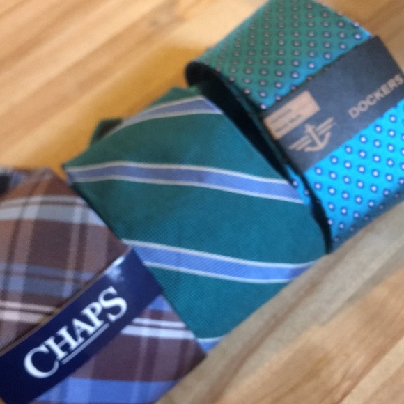 Classic with an edge tie bundle! Dockers and Chaps ties new with tag. Pre-loved Brooks Brothers. Some thread pull on Brooks Brother’s and Docker’s ties.