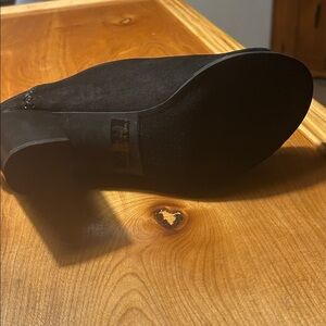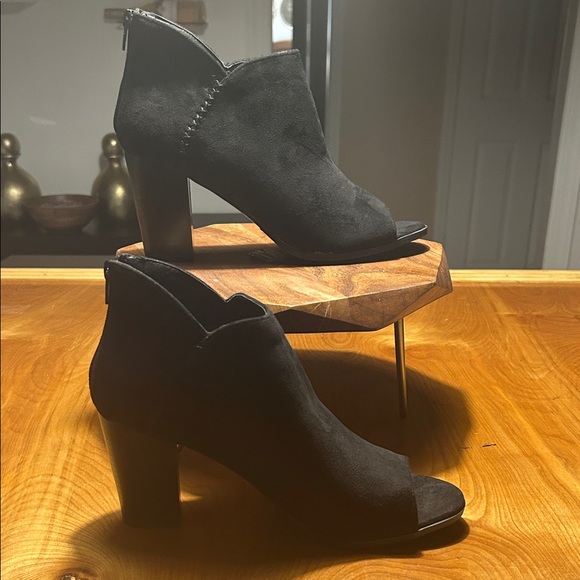 Suede peep-toe booties | Heel Height: 3 inches | No box