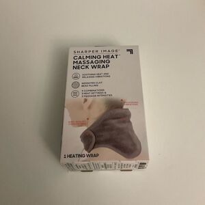 Sharper Image Calming Heat Massaging Neck Wrap soothing heat and relaxing vibrations. Weighted clay bead filling. 3 heat settings, 3 massage intensities. Comfortable fabric