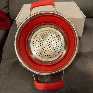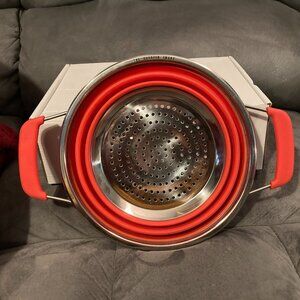Sharper Image Collapsible FoodGrade Silicone Colander w/Metal Strainer VGUC-9.5"