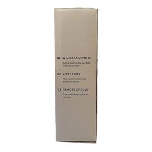 With this Auto Keyfinder from the Sharper Image, you'll never have to worry again about misplacing your car keys. This set includes 2 key fobs and a wireless remote, which uses a distinct alarm to locate each key within a 45 foot radius. Signal and locate key fobs up to 45 feet away. Plays distinct alarms to easily find keys Includes 2 key fobs Measures 5.9" L x 4.72" W x 5.9" H 85% plastic/10% metal/5% magnet. Smoke and pet free home, Accept reasonable offers, Thank you for stopping by!