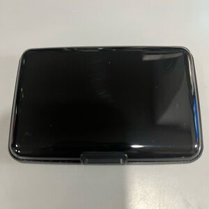 Stylish card case by Sharper Image. Glossy black finish. Ideal for card organization. Most likely, this is RFID, but I don’t have any documentation proving it. Great condition, clean and smoke free. Bundle with other items for best deals.