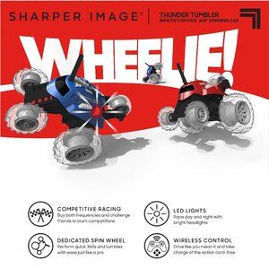 SHARPER IMAGE Thunder Tumbler 49MHz Children's Remote Control Spinning 360° Rotating Car Toy for Boys/ Girls, Stunt RC Race Truck, For Two-Vehicle Fun, Combine Only with Blue OR Red Car BLACK