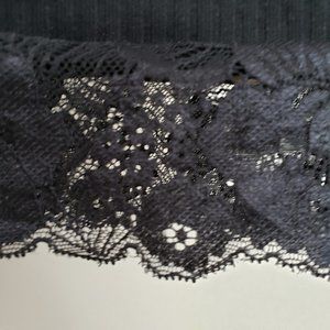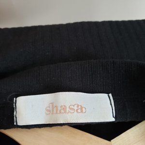 Shasa High Mock Neck Black Crop Top. Ribbed with lace detail at the bottom.