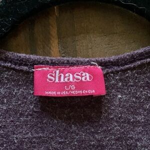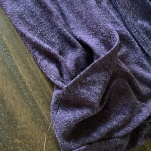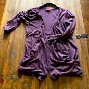 Shasa L purple cardigan with 3/4 length ruched sleeves and pockets
