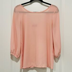 Shasa Women's Blouse With Back Bow and Deep V-Neck Detail Blush Pink Sz. Small
