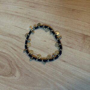 18-karat-gold–plated charms add extra glamour to this handcrafted stretch bracelet.