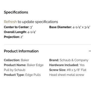 Shaun Bakers Edge 10020-PN Pull Cabinet Kitchen Decor Polished Nickel 3” C-C NWT