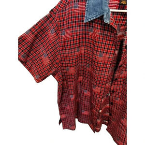 Shaver Lake Worran Women's Red Short Sleeve Button Down Plaid Shirt Size 2X