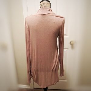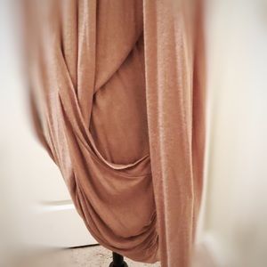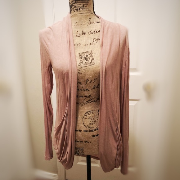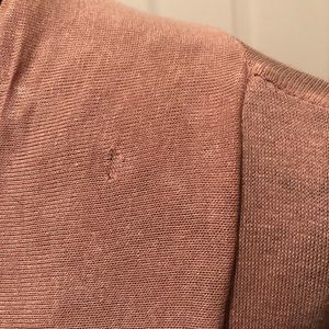 Light weight flowy shawl with pockets. Small snag, bough like that. Went unnoticed as the way it lays. Never worn. Rusty pink color.