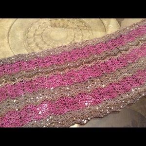 Burgundy w/silver metallic thread v-shape shawl w/open work finish.