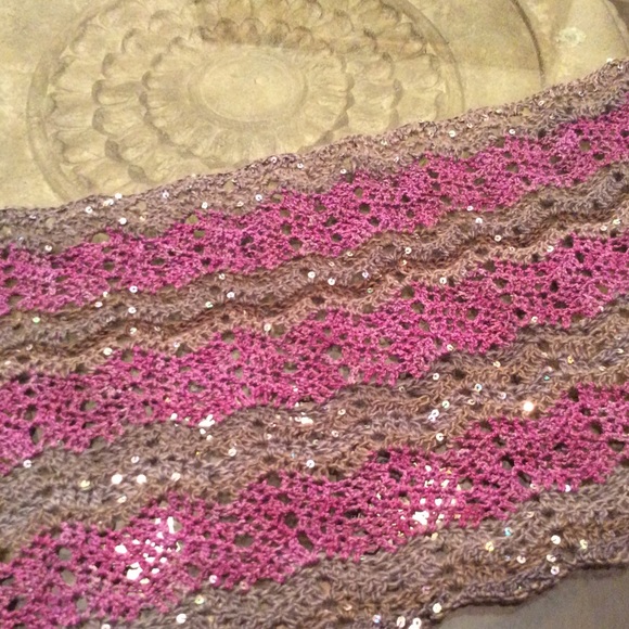 Rose,mocha, sequined rectangle shawl