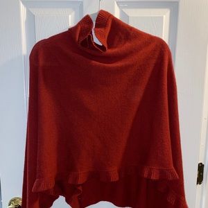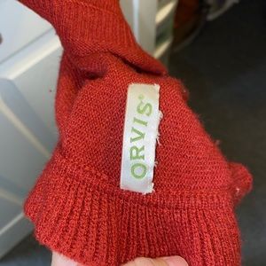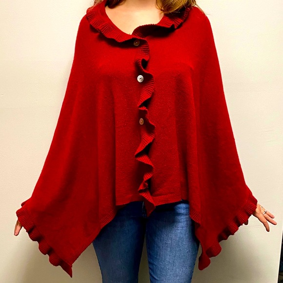 Beautiful red Orvis shawl! White buttons all down the front of the shawl, very comfy and very cute! It has been gently worn but is in great shape.
